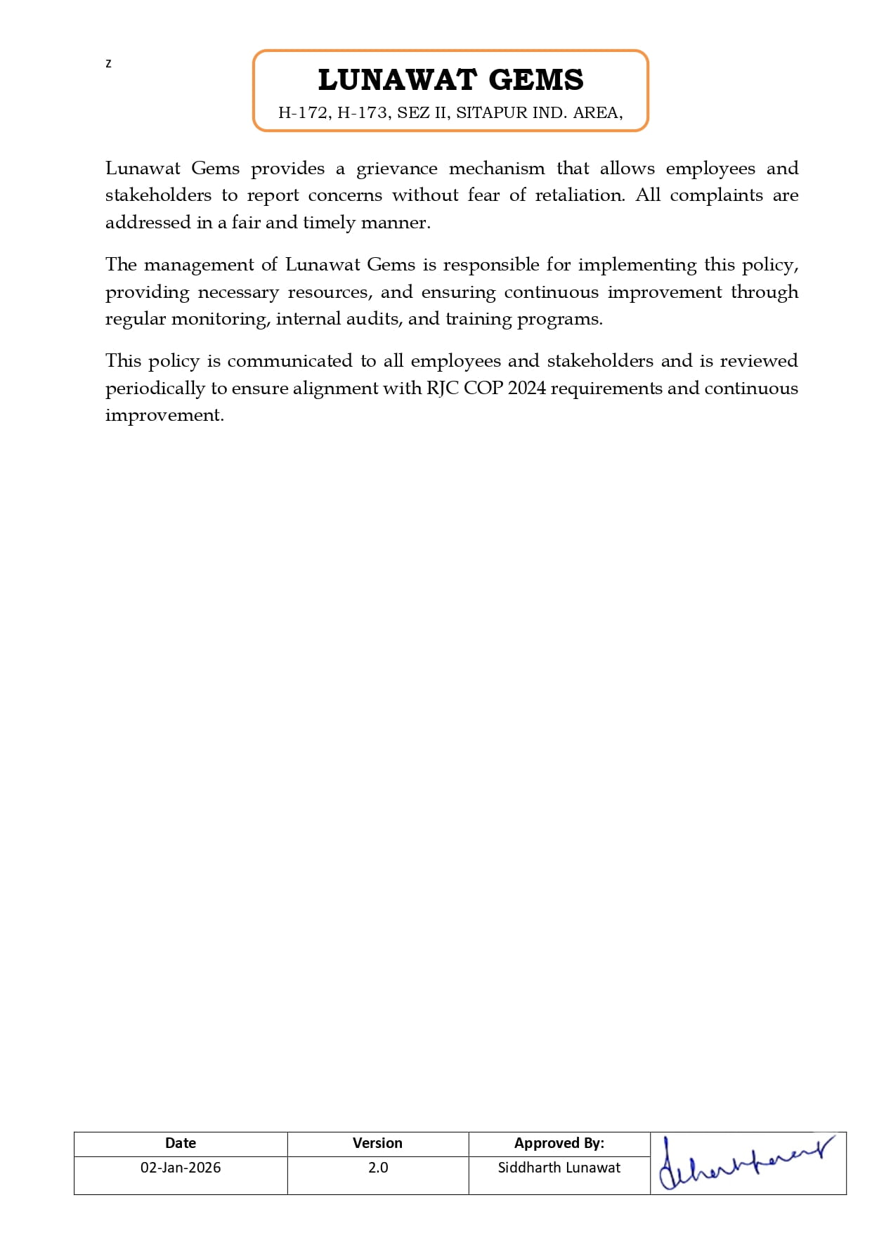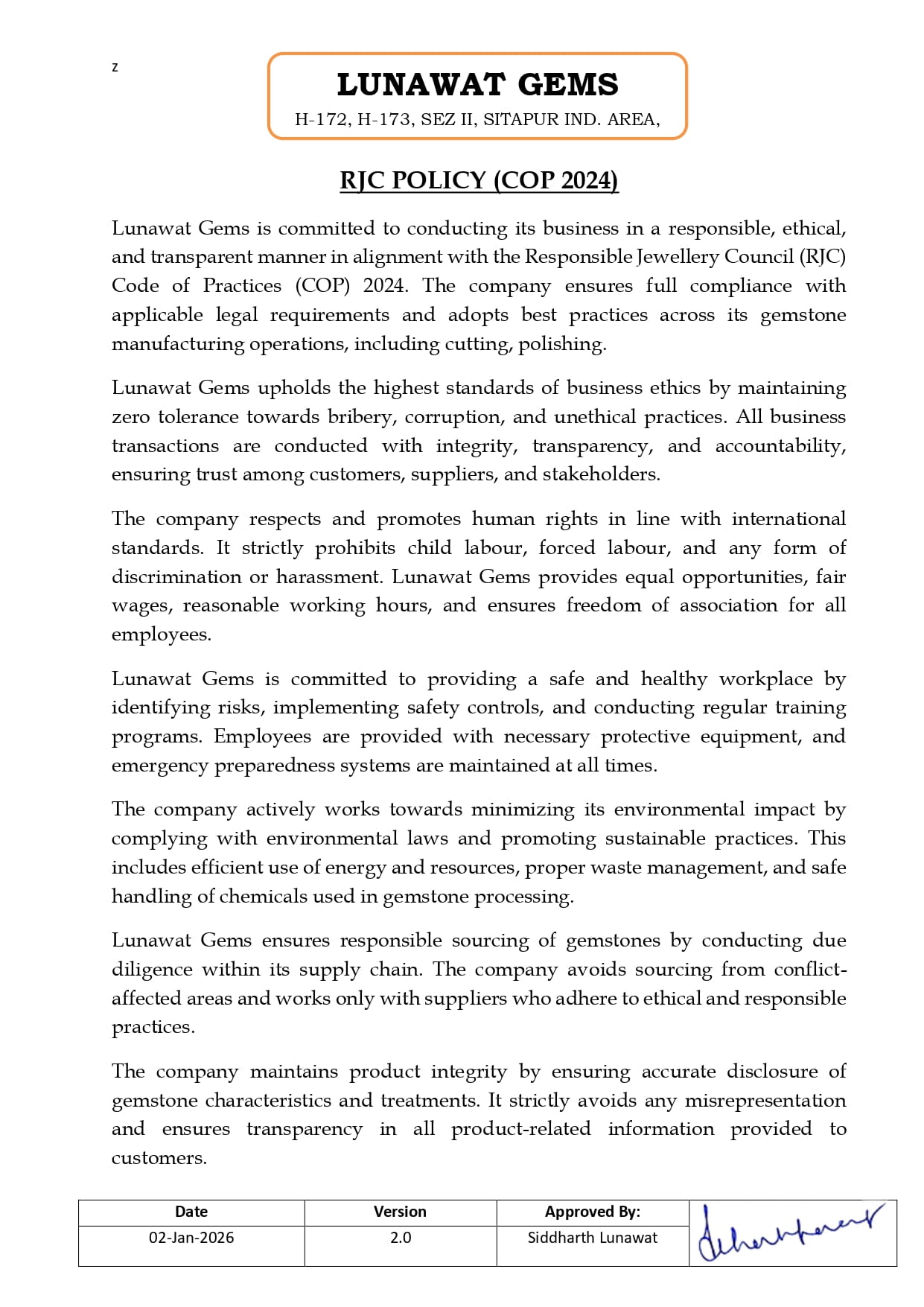 RJC Policy