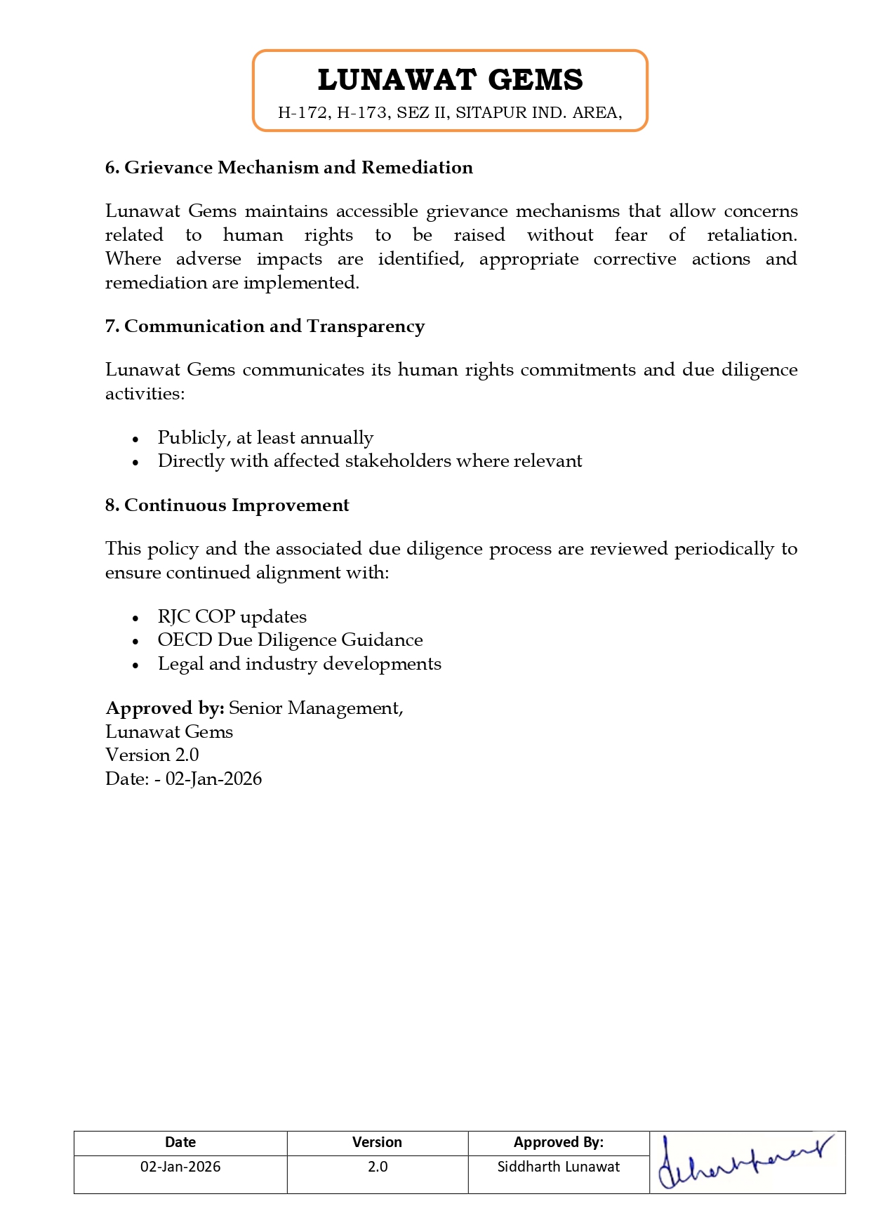 RJC Policy
