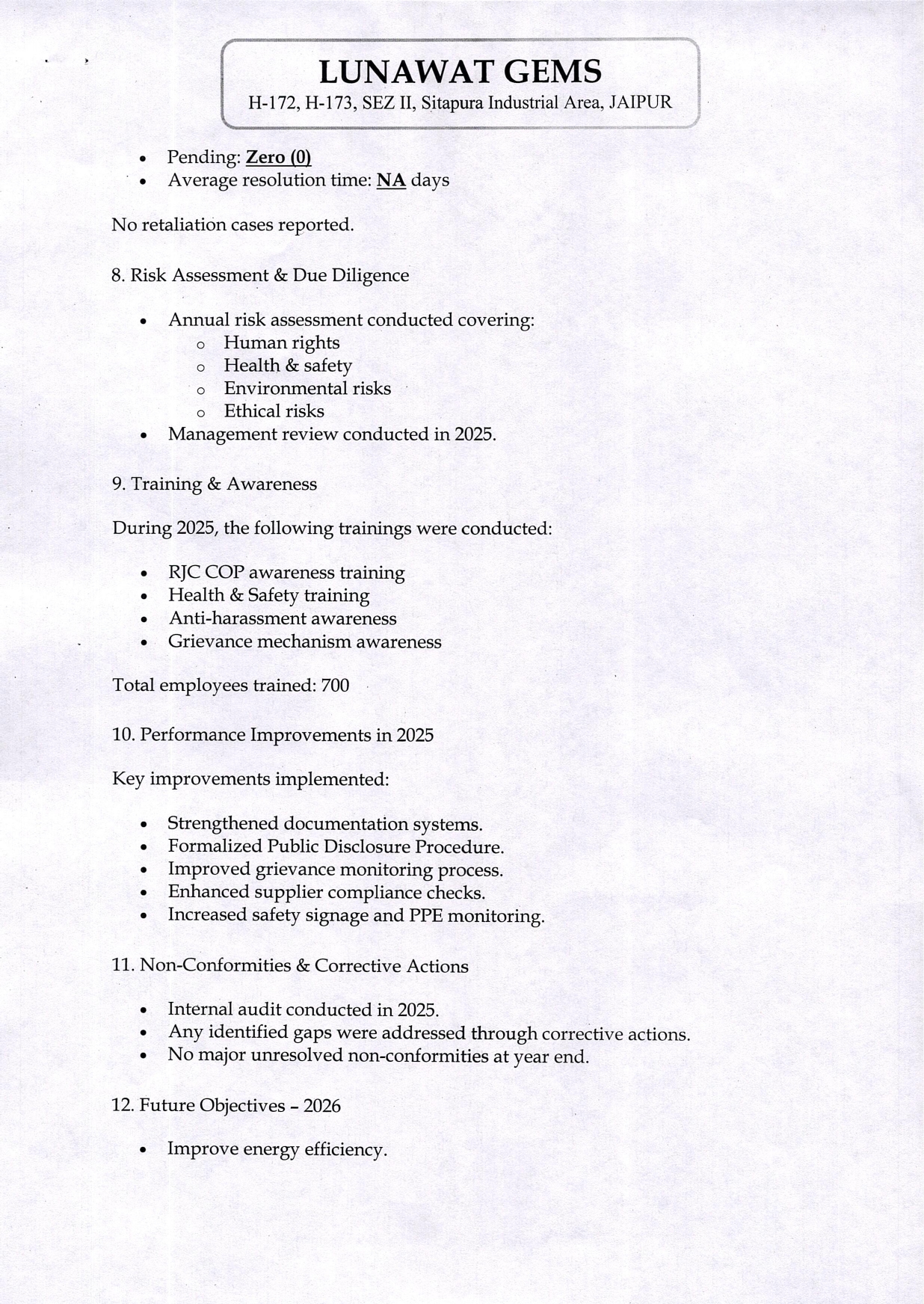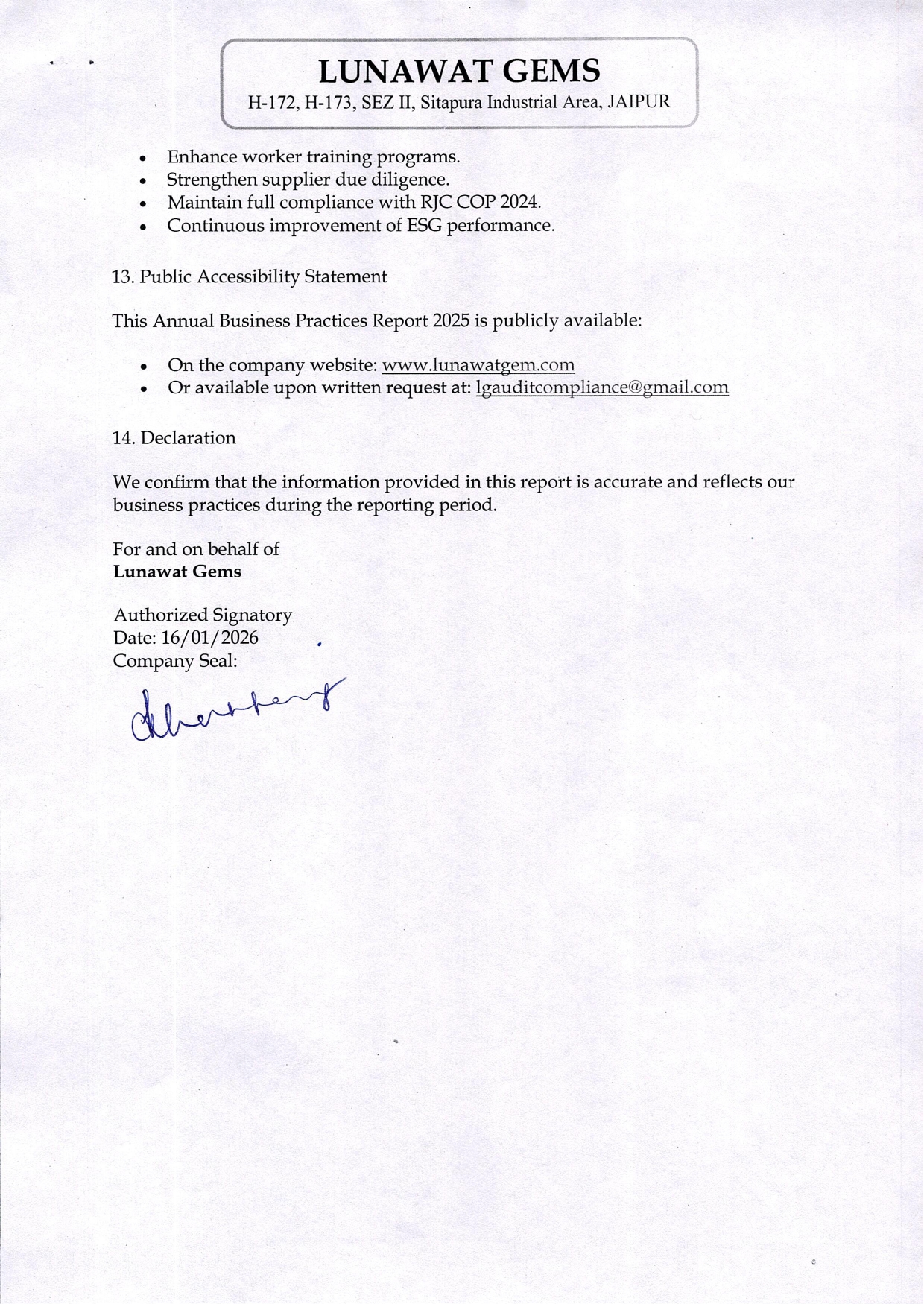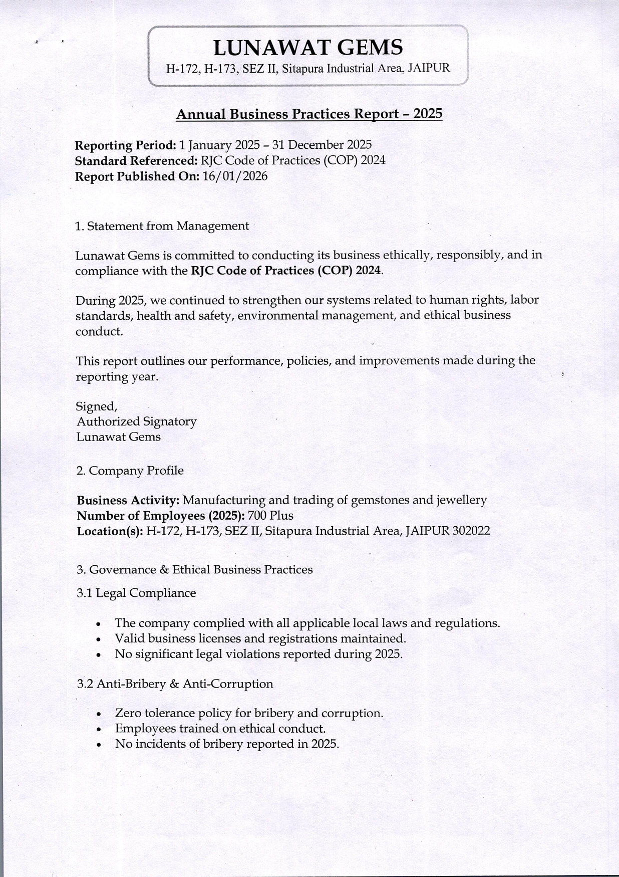 Annual Business Practices Report – 2025