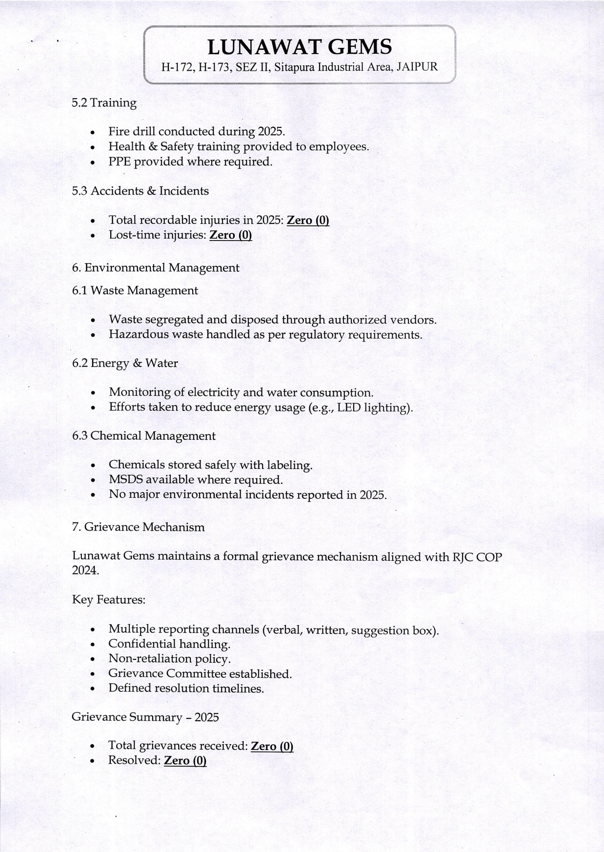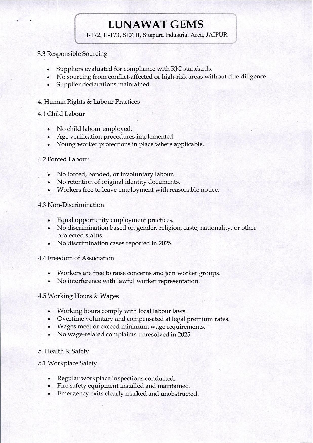 RJC Policy